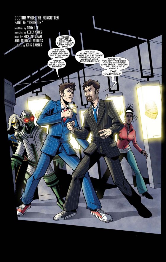Comic Book Resource’s “Lying in the Gutters” column, #194, for those trying to complete their collection, has just released a version of the first page of the often celebrated (on this blog if nowhere else) Doctor Who: The Forgotten‘s final issue. Page one, if you were smart enough to read it, features the Doctor and Not The Doctor arguing. On the next page, the Doctor says something to the tune of “can’t you come up with something better than the Valeyard”? Well, here’s why.