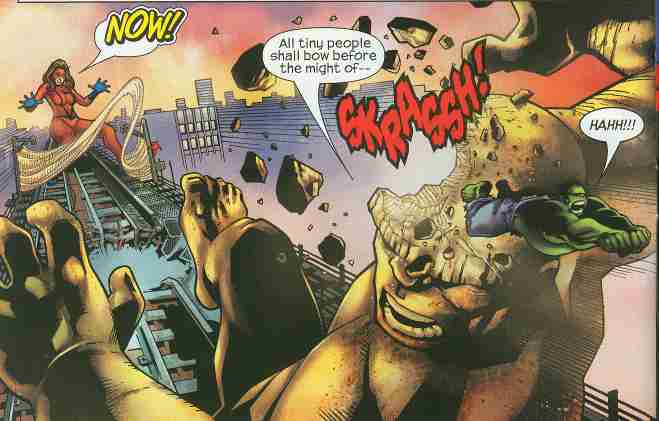 How do you make a giant rock monster fall in the Marvel Adventureverse? No, not by tying the Thing’s feet together (and Johnny Storm has tried). All you need is a giant-sized girl, a web-net, and a gamma-spawned monster. That’s Spacebooger‘s key to success.