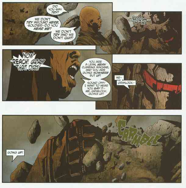 Roadblock encourages Grimlock to push on.