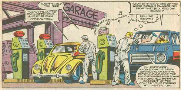 At Hoist’s suggesting, Brick and the band convinces the kids that it’s all part of the show, because (as next issue shows) gullibility is king in the Marvel Transformers Universe. So what happened to Bumblebee? He’s down the hole, where he finds the “power siphon”, and the siphoner himself.