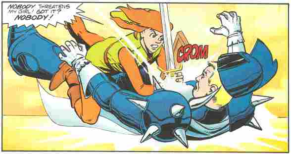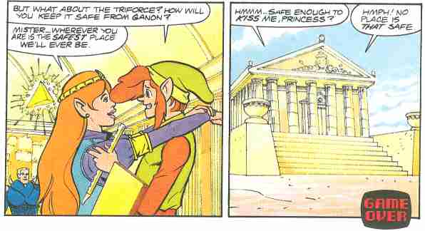 The Promoters: George Caragonne, Sir Rodney Ramos, Ken Lopez, P. Zorito and the Gradations (Again, Valiant’s “Nintendo Comic System” comics never told you who did what, and only had the credits on the side of the first page of that story. They also had two seperate stories per issue, with some comedy filler, and a two page set-up only during the first issue. However, if you’ve ever played the first two Zelda games, or saw the cartoon, you’re already up to speed.