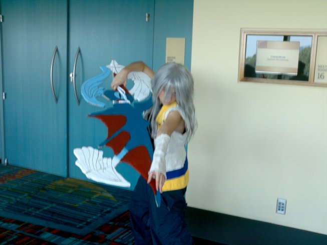 When I saw her (I think it was a her–hard to tell when cosplaying a Square/Enix video game character 🙂 ) lying there, I had to take a shot. With the camera! Then she offered to pose for me. Nice girl.