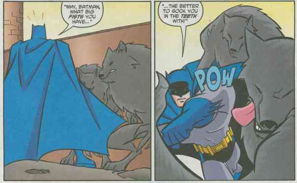 What they got wrong: One of my concerns when it comes to these cartoon spin-off comics is how they sometimes contradict the show, especially when the comic writer decided to play a little too close to the main comics continuity. That part didn’t happen here, but unless this story takes place prior to Catman’s first appearance in the cartoon (where Batman already knows Catman is a bad guy), there is still a contradiction. On the X-Ray Studios blog, Landry says that he saw the episode after this comic was already complete, so there might be some merit. (I’d have to rewatch it to see if they mention meeting prior to the episode.) Also, everyone on the internet knows Batman can breathe in space.