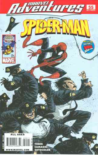 What they got right: I like the art on this book. It’s fun and comic book-y, if that’s a term. Someone also snuck in a reference to Fury Files, a website Hasbro and Marvel put together to promote the Marvel figures (I imagine), as well as a few other ad signs. Peter and Chat continue to make a fun couple, to the point where I find the Stacys, interesting as they are, a distraction. Then again, this isn’t “Spider-Man Loves Chat”. 🙂 The parts with Spidey uncomfortable walking in public on the ground as Spidey (ether with Gwen or Captain America) are nice, but sort of contrast other Tobin MA stories in Avengers and Super Heroes, where they do that sort of thing all the time.