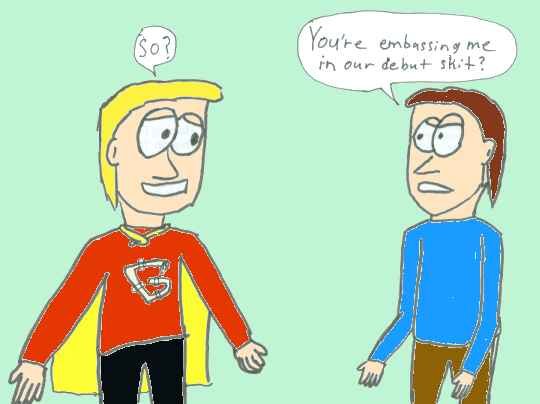 Jake in a G-Man outfit, embarrassing Leon. This was the announcement that Jake & Leon was happening.