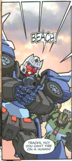 What they got right: The timeline placement section tells us that this takes place between Last Stand of the Wreckers #1 and Bumblebee #1. I’m glad theyre using this. Figueroa’s humans are getting better, and his action and transformation scenes work well. I like the vehicle mode redesigns he’s come up with, including Blurr’s Earth alt mode. Sadly that leads into.