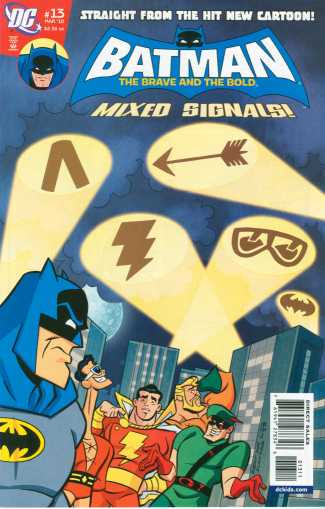 The Batsignal is joined by signals from around the city for Aquaman, Captain Marvel (Shazam), Green Arrow, and Plastic Man.