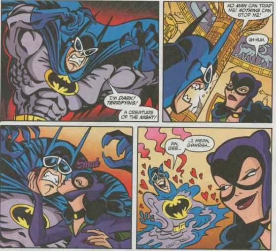 What they got wrong: I’m going to assume that Sholly wrote this prior to the episode where we meet Plastic Man’s wife, because otherwise that scene with Catwoman is kind of wrong.