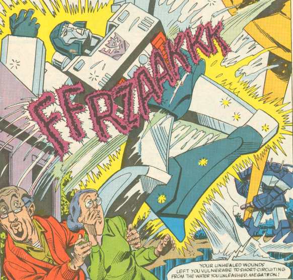 That’s about to change. Remember how Megatron wasn’t fully repaired yet? Well, water and circuits used to being in a properly sealed shell don’t mix.