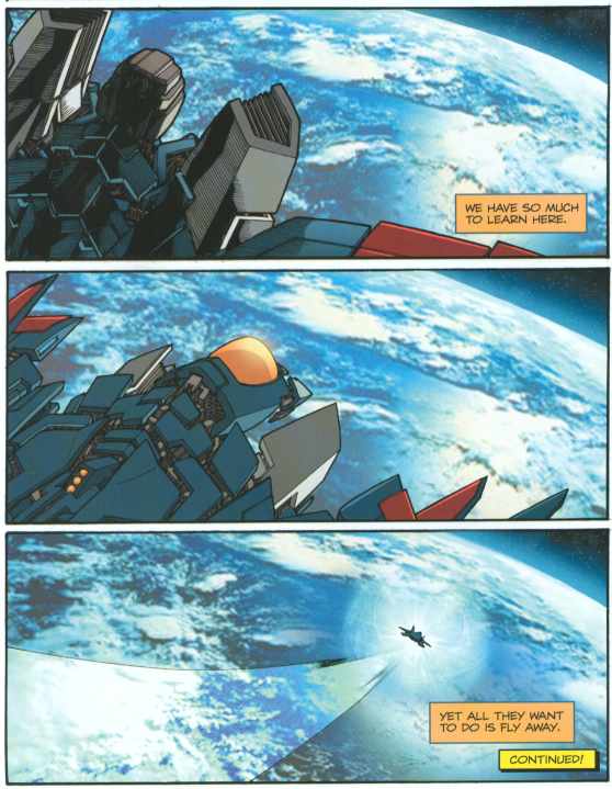 Ultra Magnus finds the rouge band of Autobots, and is less than pleased to see Hot Rod, now talked by Swindle into going by “Rodimus” (or “Rodimus Prime”), is working with Decepticons, especially the aforementioned Swindle. Meanwhile, Spike is questioning his decisions up to this point (not including capturing Autobots, sadly). The focus, however, is on Thundercracker, who has developed some kind of respect for the Earth.