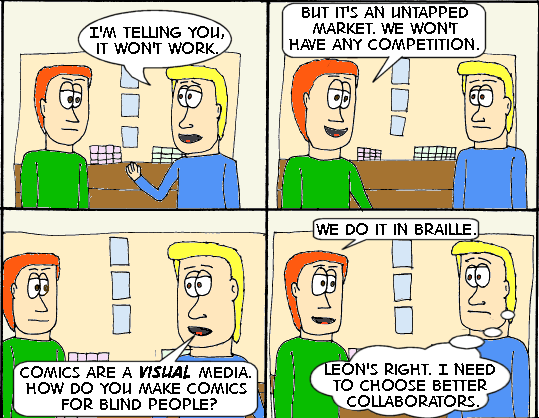 Don’t get me wrong. I’m not actively trying to offend anyone. Then again, it does seem to be a sign that you “made it” as a commentary strip if you offend some group. But between this and the “girl gamer” comic a couple weeks ago, I’m totally asking for trouble. Click the comic to see the origin of this joke (such as it is) and maybe you’ll understand my inspiration.