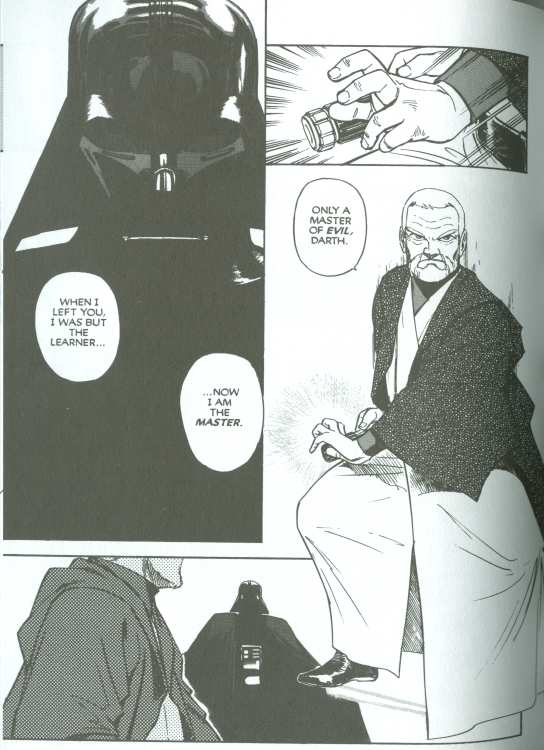 Obi-Wan prepares to draw his lightsaber samurai style in the manga version of Star Wars.