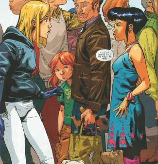 What they got wrong: What I’m going to call the “C” plot with Bullseye isn’t even touched upon this issue. Will it come up in Spider-Man (Marvel Adv.)? Also, a scene or dialog that tells us Emma unmessed Gwen’s head would have been nice. And there’s one curse he hasn’t broken–being stuck with bad art on the final issue. While not the worst “end artist” he’s had, in one scene Chat actually looks like an old Jewish mother stereotype. I wish I was kidding.