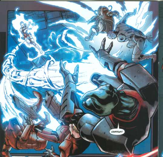 But it’s the art that’s really getting on my nerves enough to give it its own paragraph. It’s an improvement over the previous issue (outlines that let you tell object A from object B! about time!), but still doesn’t hold a candle to the previous arc. And the colors are so dark, so it can match the artwork. Seriously, I’ve seen Turner’s deviantART page. He’s capable of doing far better, but in order to match up with the art he’s really being brought down here. It doesn’t serve him well.
