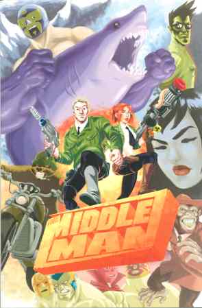I first heard about The Middleman from the excellent (and wrongly canceled) ABC Family television series, and when I saw in the credits that it was based on a comic, I really wanted to check it out. Unfortunately, it wasn’t one currently active. There were some trades, but they were old, too, so I couldn’t find them. I waited quite a while for this one when it was in Previews, but Diamond doesn’t get these things out that quick, and my local LCS doesn’t sell a lot of trades (take that, floppy haters!) so they only specially order them. I did order this one, but this is how long it took to arrive. Luckily, it was worth the wait.