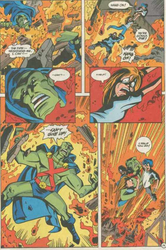 J’onn J’ones goes to investigate and get a face full of fire for his trouble.