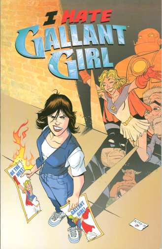 Originally released as a 3-part miniseries, I Hate Gallant Girl is the story of Renee Tempete, who has always dreamed of winning the Gallant Girl competition and taking the title to fight alongside the Fellowship of Freedom. However, as Miss Maine she loses to Miss California. The super hero Blue Thunder takes a liking to Renee (not that way, she reminds him of his daughter) and after she proves herself in a battle on her own, helps Renee take on her own superheroine identity, Tempest. (Her powers are mastery of the four elements.)