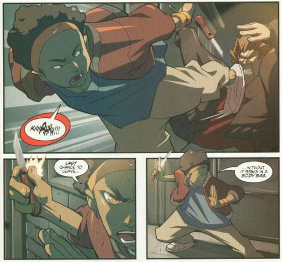 …and the feet are all Raj’s. Suffice it to say, the gang is out of there. At least for now. As Splinter tells Leo later, “such things are rarely over, and rarely that easily”. Be here next week, as the Turtles come out to play god. Literally. Until then…