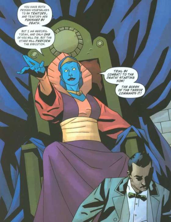Robert and Eliza, the Torchwood operatives from The Time Machination, and professor Alexander Hugh use an alien device they believe will bring them five minutes into the future. Instead they arrive on a planet that is caught in a civil war, the forces led by the Advocate and her former sidekick, now identified as “Lau’Tan”. Lau’Tan has come to oppose her plans in the two years since their last meeting with the Doctor, but Matthew is still falling for her lies, and wants to “save” Emily. The Advocate’s forces arrive to take the Doctor and Emily prisoner, but Lau’Tan assumes the Doctor’s form. Eliza even comes to side with the Doctor as Robert has gone mad, and Hugh’s assistant is killed during the kidnapping. The Advocate doesn’t fall for Lau’Tan’s trick and orders that he and Emily fight…to the death!