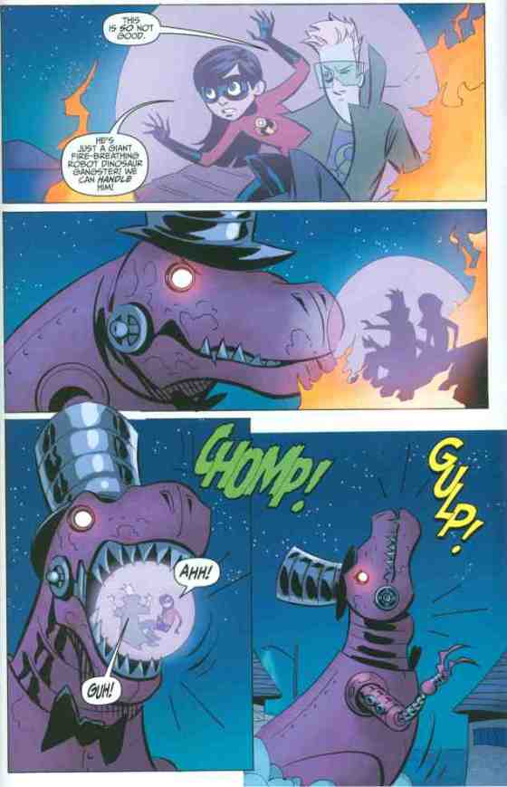 Mrs. Incredible learns Xerek’s true plans and is less than pleased by them. Zanger and the kid Incredibles take on Tronasaurus when Dash learns that Violet was the one who stole from Dr. Sunbright. At the prison, we learn who has been behind the villain recruitment, and the name of this villain team-up. Everything has gone just as Xerek has planned.