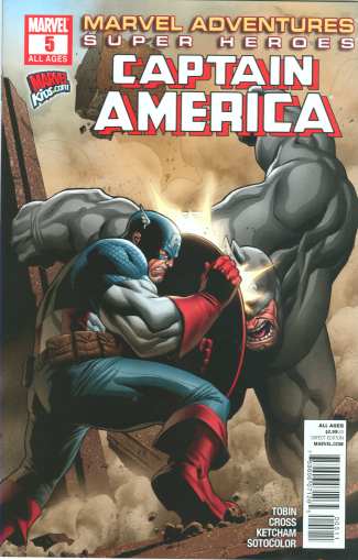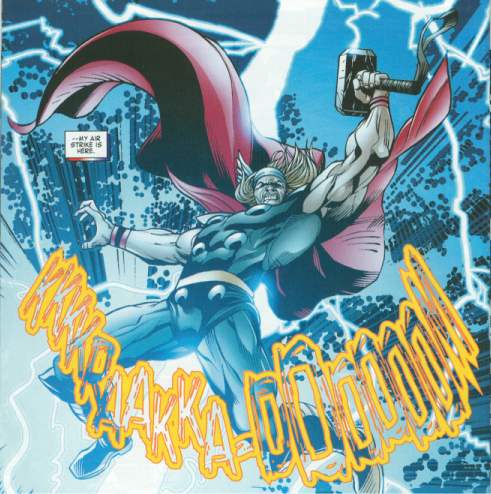 What they got wrong: Said cover shows Cap and Rhino fighting, but that doesn’t happen in this comic. The art doesn’t suck exactly, but I do have a few problems with it, especially Rhino’s design. On the whole, there are times when character art seems too detailed–not the whole character but in a few spots. This only happens in a few panels (mostly close-ups of Captain America.) Rhino doesn’t look like he should be able to move very well and looks more bulky than muscular. (Not fat, just…bulky.) The backgrounds are pretty good.