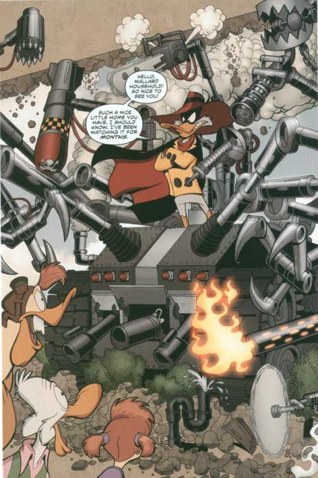 Launchpad rescues Darkwing, and they flash back to the incident that broke our heroes up. Negaduck finds Drake Mallard’s home after following Launchpad, but it’s the Crimebots that save him. That leads to Drake leaving the hero game to protect Gosalyn. She is able to convince her dad to reclaim the night just as Negaduck’s old teammates attack them. (We also learn why Quackerjack despises Negaduck.) However both parties are captured by the man behind Quackwerks (who for some reason lets Honker go), and he is revealed to be…Taurus Bulba!