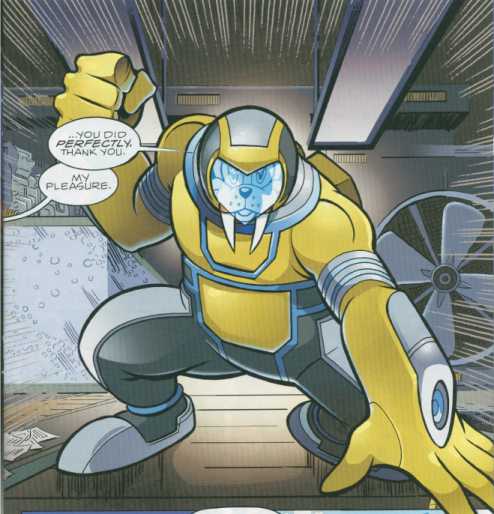 The Arctic Freedom Fighter contact our heroes, warning that the Walruses, Rotor’s people, are again under Robotnix control. Sonic races up there, but Rotor’s injuries keep him out of the action–until he and Nicole build a battlesuit to make up for it. Rotor’s flight to help Sonic is interrupted, however, by Silver the Hedgehog. Apparently unaware of the concept of nicknames (Rotor’s real name being Boomer), Silver is convinced that the walrus is the traitor he’s been searching for and chooses that moment to attack him.