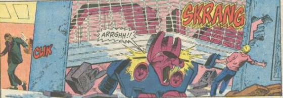 Unfortunately, Ratbat has his sights on Goldbug (you’d think Yomtov would have at least colored them like their original bodies so we knew who’s who–hardly the biggest convenience device ever used in a comic), and his battery is almost drained. Thus we have the greatest scene in the comic…
