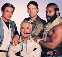 If you don’t know what this series is about, you haven’t been paying attention. Hannibal Smith (the late George Peppard) leads a team of framed soldiers as soldiers of fortune. The show that made Mr. T famous as B.A. Barracus, the series also stared Dirk Benedict as Templeton “Face” Peck (con-man) and Dwight Schultz as H.M. “Howling Mad” Murdock (crazy man). Interestling, Benedict got his start in a sci-fi show (Battlestar Galactica) and Schultz had his other big break years later in a sci-fi show (Star Trek: The Next Generation).