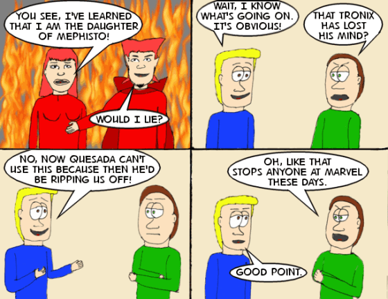 And so we say goodbye to the Marvel War story arc, and return to the good ol’ Jake & Leon you all know and ignore. Next week we return to the done-in-one strips, and bring back our new character, Fizzben. This part was fun and all, but I think it’s going to be a while before I do another arc. It doesn’t quite fit in with the strip’s usual theme, but I got something useful out of it (for what, click the comic), so there’s that.