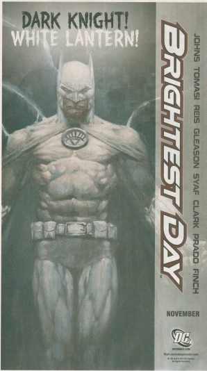 Yes, it appears that Batman will become a White Lantern. This whole “Technicolor Lanterns” idea may well be jumping the shark if it’s not too late. Don’t get me wrong. Outside of the Red Lanterns puking blood, I actually don’t have a problem with the other colors getting Lanterns of their own, but does everybody we already know have to be a Lantern of some kind?
