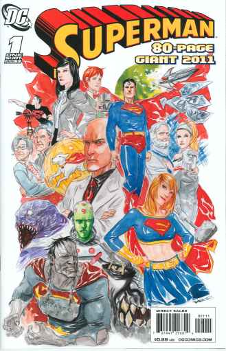 COVER ARTIST: Dustin Nguyen EDITOR: Will Moss GROUP EDITOR: Matt Idelson “SUPERMAN” CREATORS: Jerry Siegel & Joe ShusterLike the previous offering, the 2011 80-Page Giant (which I guess has replaced the “Annual” at DC) is a collection of short stories, but this time focused on Superman’s supporting cast. (Take that, JMS.) Superman does make an appearance in a couple stories but for the most part he’s absent from the comic.
