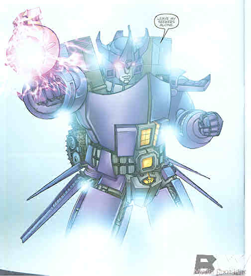 Arcee and Hardhead attack the Decepticons, but by tapping into the Dead Universe with his “Anti-Matrix” Galvatron turns Arcee away (sending Cyclonus and Scourge after her) and taps Hardhead’s memories to learned what happened on Gorlam Prime. After passing through the portal into the Dead Universe, Galvatron barely escapes an entity called D-Void and decides that only a team-up of Autobots and Decepticons can stop D-Void from doing to this universe what it did to that one. Arcee, however, escapes and prepares to warn the Autobots that he’s gone mad.