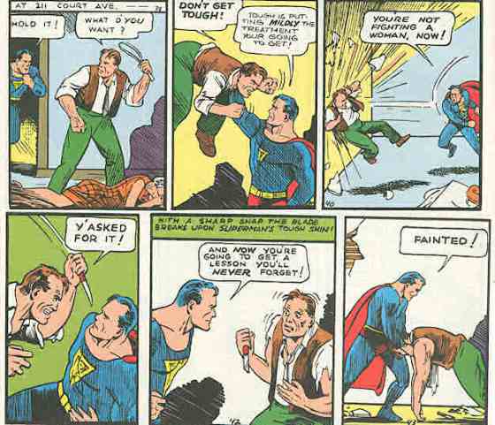 At his job at the Daily Star, reporter Clark Kent gets a tip of a wife-beating, because people always called newspapers before or just after calling the cops (and in some cases instead of). And being Superman he gets there ahead of the cops.