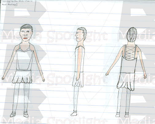 I tried to give her head something of a heart shape. Both girls are depicted in (what my art skills can represent as) ballerina outfits, since the only other outfit we see May in is the ninja costume and Meg will be under the covers or in her nighty.