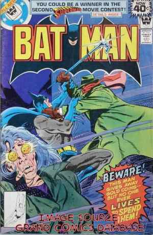 WRITER: Len Wein ARTISTS: John Calnan & Dick Giordano COLIRST: Glynis Wein (Len’s wife at the time) LETTERER: Ben Oda EDITOR: Julius SchwartzSomeone is killing the homeless of Gotham, leaving gold coins as his calling card and believing he’s doing them a favor. Batman investigates and finds not only that some of the homeless have formed a small underground group, but a connection to the owner of the coins who believes them stolen.