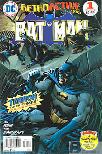 WRITER: Len Wein ARTIST: Tom Mandrake COLORIST: Wes Hartman LETTERER: Dezi Sienty ASSISTANT EDITOR: Chynna Clugston Fores EDITOR: Jim Chadwick“DC Retroactive” pairs writers from a certain point in DC history, who then write a brand new story set in that time period, with their artists when available. I guess a 70’s Batman artist wasn’t available.