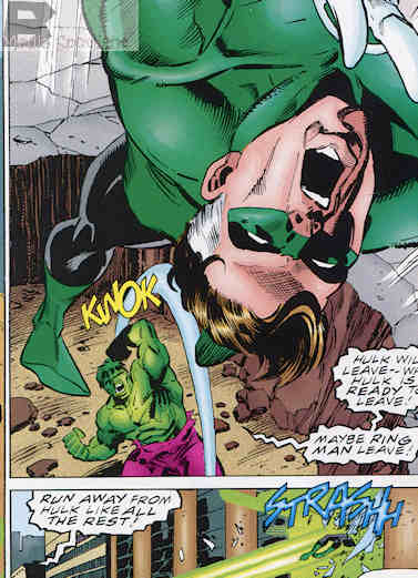 And it works…for a few seconds. Hulk just grabs Access and heads off, the “cosmic hall monitor” finally able to open a portal. Sure, Hal didn’t knock Hulk out, or kill him or anything, but he made the Hulk run off. Maybe Hulk’s heart wasn’t in the fight, but this is as close to a victory as Hal is going to get off of the big green, so we’ll call it such.