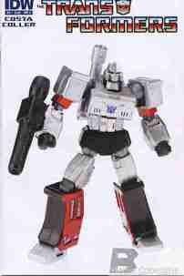 What they got wrong: However, it isn’t the end of IDW’s G1-based Transformers Universe. In fact, the TWO new series taking place in this universe appear to be continuing after the end of the “Chaos” and “Last Story On Earth” arcs. Oh, and I find it interesting that the guy who once killed off Ironhide (then brought him back through the Transformers version of cloning) has now set it up that Ironhide will never be killed off by later writers without screwing up continuity. That just feels wrong. And I still don’t know what the smelter happened last issue! Finally, a static pose of Revoltech Megatron for the “A” cover and a head shot of Ironhide for the “B” cover. Lazy.