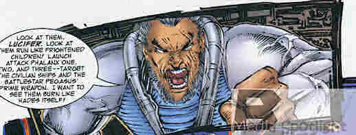 Later we learn that Starbuck is indeed alive after the events of The Enemy Within and in a nice callback, he’s christened the planet he’s crashed on Planet Starbuck. Then a whiplash-inducing shift as the Cylon attack fleet shows up, and pretty much devastates everything, even the Ark, followed by the worst Baltar drawing yet, even taking the Liefeld-created character model into the equation: