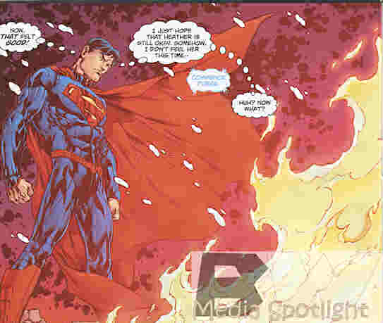 After being interrogated by the police, Superman, Miko, and Jimmy are surprised to learn Heather is alive and about to appear on a talk show that isn’t favorable to Superman. Clark stops by but through Heather the three being appear again to attack Superman–and claims he created them.