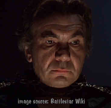 Back on Galactica The Younger, Adama gets the idea of using the recall codes from the memory of the future Cylon to call the ships away from Caprica and the other colonies aren’t attacked at all. This doesn’t sit well with the Imperious Leader, now wearing some kind of cloak for…some reason…yelling at Baltar, who we never get a good look at. (I guess they can’t drawn him unless he has a ponytail and wearing his clothes tight enough to see the veins in his arms even though the sleeves appear to be metal. Also, I think he’s supposed to be sweating but he looks like he forgot to dry his hair when he got out of the shower this morning.
