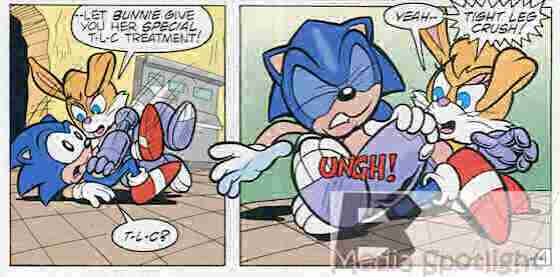 Bunnie and Tails, unaware of any of this, walk in and decide to help restrain their friend.