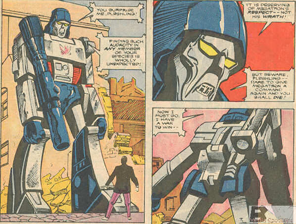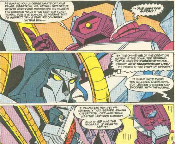 One slight change here. As I’ve discussed in the past, Budiansky created the Creation Matrix, not the Matrix of Leadership (unless he also worked on the movie, in which case never mind). At any rate, Bob came on for issue 5 and wrote most of the comics from there out. (He missed issue #16 due to his work on Transformers Universe, a Transformers version of The Official Handbook to the Marvel Universe.) However, what is it about his run that I enjoyed?