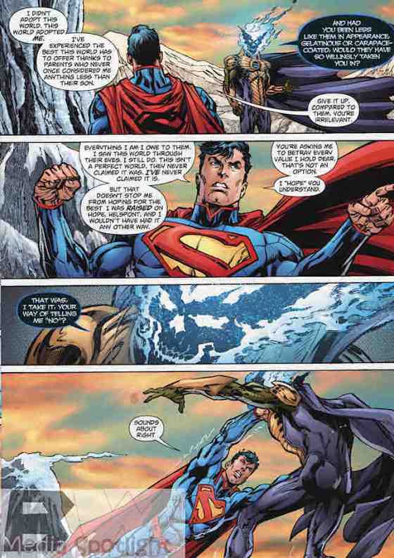 What they got right: I like how the humor bit from last issue was actually helpful to Superman in this part of the story. Clark is bruised, which you would never see in the usual overpowered Superman too many writers make him into.