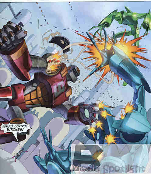 Kid Vigilante and former supervillain sidekick Ladybug make a special trip to “visit” his comatose brother. Meanwhile, Yoshimi travels to Micro-Tokyo, where they don’t take kindly to a girl piloting a robot, to retrieve yet another item. All this happens before the events depicted in the first few pages, where the new world president and former American Spirit (darn, another patriotic hero name I can’t use in my comics) orders Kid Vigilante shot…by another member of the Club!