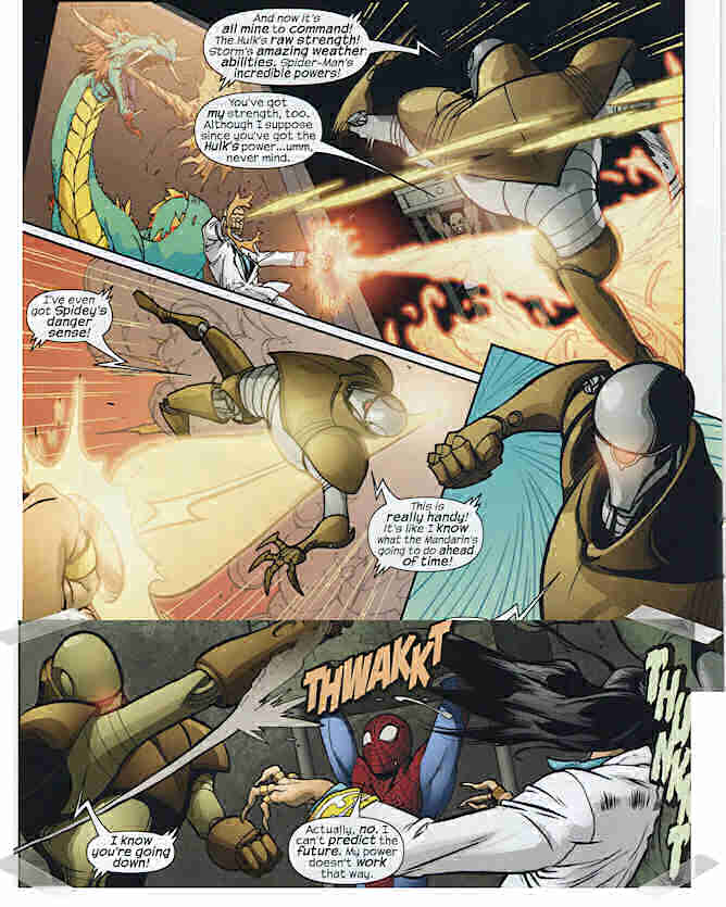 And then we see how the Mandarin captured Luke Cage, Storm, Spider-Man, and the Hulk and absorbed their powers into his robot. Because that plan neeeeeever fails.