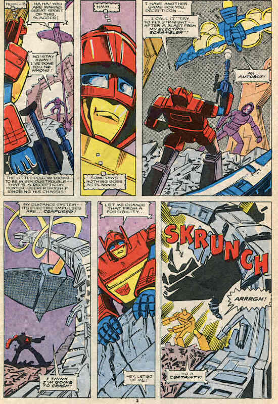 Blaster is going to meet one of his allies when he comes upon a Decepticon attacking a helpless civilian.