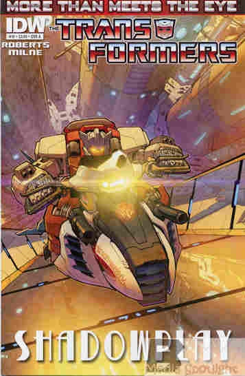While Rodimus and Ultra Magnus continue to investigate the assault on Red Alert, the others continue the pre-war tale. Prowl and Chromedome’s investigation merges with Orion Pax’s as they learn events are actually a trap to brainwash members of the burgeoning Decepticon movement. This includes setting off a bomb at a funeral for the last Prime and not knowing who to trust means our trio plus Ratchet and Roller must do something rather desperate to save lives.