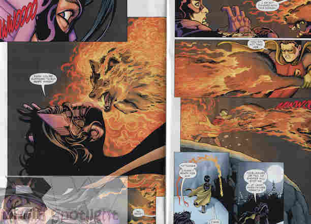 Robin and Huntress are dropped off somewhere in the snowy woods, where they encounter a wolf pack and a very deadly werewolf. Meanwhile, Power Girl hits the Congo and finds kids armed with Apokolips weaponry.
